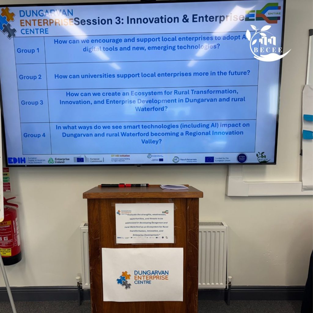 The BECEE project is delighted to highlight the ongoing collaboration with ENTIRE – European Digital Innovation Hub (EDIH) and Dungarvan Enterprise Centre (DEC), who are exploring the concept of developing Dungarvan and West Waterford as an Ecosystem for Rural Transformation, Innovation, and Enterprise Development.